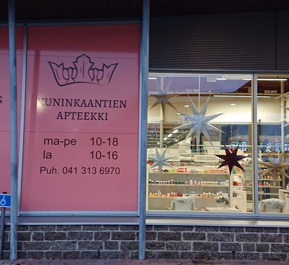 Kuninkaantien Sivuapteekki ma-pe 10-18 la 10-16 su ja pyhäpäivät suljettu.