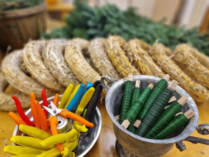 Nu när julen närmar sig är det extra trevligt att kunna presentera bilder som tagits under kurserna. Här finns foton från barfotaskokursen, mässresan och julkranskursen samt tips på kommande kurser. Och på julkortet i slutet av artikeln finns söta små hus och granar, skickligt tillverkade på keramikkursen. De små husen kommer förmodligen att stå mitt på julbordet hos sin skapare, kanske med julbelysning inuti husen och slingrande mellan granarna!