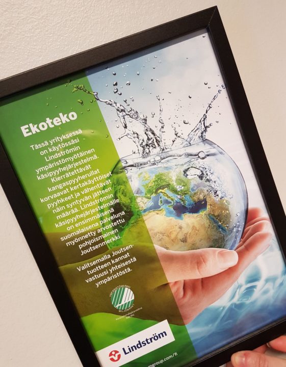 20.12.2018 Daghemmen i Lovisa gjorde en miljögärning Små händer i alla daghem i Lovisa torkas på handduksrullar i bomullstyg. Pappershanddukarna har frångåtts av miljöskäl. Mängden sopor minskar klart då daghemmen byter från pappershanddukar till tyghandduksrullar som kan återanvändas. För det här belönades stadens daghem med textiluthyrningsföretaget Lindström Oys Ekoteko-diplom. Enligt Lindström har företagets handdukssystem som första i Finland fått det nordiska Svanmärket. – Förstås bör också handduksrullarna bytas och tvättas, berättar chefen för städtjänster i Lovisa stad, Tuija Niemeläinen. Däremot kommer avfallstransporterna att bli färre. Bytet till tyghanddukssystem var framför allt en miljögärning. Enligt Lindström Oy ger en tyghandduksrulle ungefär 13 200 torkningar under sin livstid. Det motsvarar upp till 93 kilogram pappersavfall. Handdukarna tvättas enligt sjukhusstandarder och automaten ger ett nytt stycke ren handduk för varje användare. Dela: Länken har kopierats till urklipp