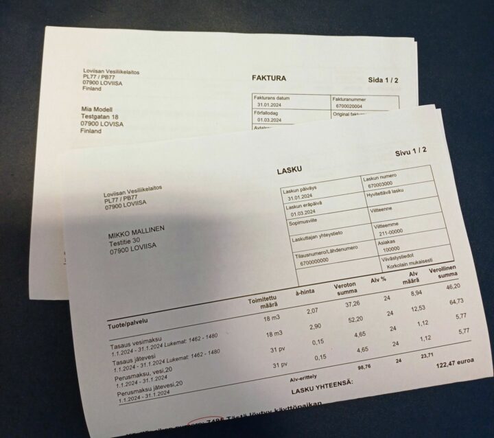 14.01.2025 Affärsverket Lovisa Vatten meddelar: Vattenfakturorna för tidsperioden oktober-december 2024 Vattenfakturorna för tidsperioden oktober-december 2024 har skickats till kunderna. Om fakturan inte kommer inom några dagar, vänligen kontakta Affärsverket Lovisa Vatten tfn. 019 555 225. Om du har e-faktura, får fakturan direkt i din nätbank. Om du vill ta i bruk miljövänliga e-fakturor, gör ett e-fakturaavtal i din nätbank. Affärsverket Lovisa Vattenverk hittas i bankens förteckning över e-fakturerare under namnet Lovisa stad – fakturering. Att betala med e-faktura är säkert, fakturan kommer snabbt direkt till din nätbank och kan inte försvinna av misstag. Mer information: Affärsverket Lovisa Vatten Dela: Länken har kopierats till urklipp