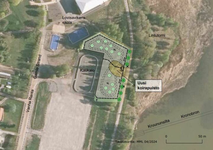 16.04.2024 Lovisa stad bygger en hundpark i Gamla Strand under sommaren Lovisa stad meddelar att en ny hundpark kommer att byggas i Gamla Strand under sommaren. Lovisa stad satsar på sällskapsdjurs och deras ägares välbefinnande genom att bygga ett rekreationsområde för hundar. Det symboliserar också stadens engagemang för gemenskap och för att öka välbefinnandet. Planerna för hundparken är noggrant upprättade och respekterar den omgivande naturen och erbjuder såväl hundarna som ägarna en möjlighet till rekreation. I planeringen av parken har man ägnat uppmärksamhet särskilt åt områdets mark och naturenliga landskap. Det befintliga trädbeståndet bevaras i så stor utsträckning som möjligt, och terrängens former planeras så att de kompletterar den omgivande naturen. Centrala egenskaper hos hundparken är skilda inhägnader för små och stora hundar samt en praktisk tambur som gör det möjligt att lugnt släppa hunden fri till det utvalda området. Genom detta försöker man säkerställa en trygg miljö för lek och sociala aktiviteter för alla hundar och deras ägare. Dessutom ska parken ha tapp- och sopinsamlingsställen samt bänkar som gör parken bekvämare att använda. Parken görs trivsammare och mer privat genom att plantera buskar och träd på området, vilket skapar en angenäm och fridfull miljö för parkens alla användare. Den besvärsprocessen som gällde projektet har fått ett beslut från högsta förvaltningsdomstolen som förkastade besvären. Beslutet bekräftade stadens rätt att bygga en hundpark i Gamla Strand. Byggandet av hundparken i Gamla Strand i Lovisa är ett betydande steg mot stadens mål att erbjuda alla sina invånare varierande och högklassiga möjligheter till rekreation. Syftet är att förbättra sällskapsdjurens och ägarnas välbefinnande och stärka gemenskapen genom att skapa nya möjligheter till växelverkan mellan stadsborna. Karta Med vänlig hälsning Lovisa stadCentralen för näringsliv och infrastruktur Dela: Länken har kopierats till urklipp