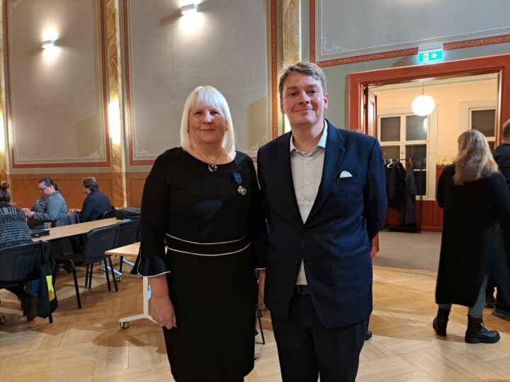 14.03.2024 Lovisa stad meddelar: Finlands Vita Ros förtjänstkors beviljades till direktör Sari Paljakka Ordförande för stadsfullmäktige i Lovisa stad Otto Andersson belönade Sari Paljakka för hennes meriterade arbete i Lovisa stad. På förslag av Lovisa stad beviljade republikens president 6.12.2023 Finlands Vita Ros förtjänstkors till direktören för centralen för näringsliv och infrastruktur i Lovisa stad Sari Paljakka. Förtjänstkorset överläts på stadsfullmäktige i Lovisa stads sammanträde onsdag 13.3.2024. Förtjänstkorset överräcktes av ordförande för stadsfullmäktige i Lovisa stad Otto Andersson. På förslag av Lovisa stad belönade republikens president Sari Paljakka för hennes betydande satsning som direktör för centralen för näringsliv och infrastruktur i Lovisa stad. Sättet som Paljakka förbundit sig till stadens utveckling och innovationer saknar sitt like och hennes arbete har medfört omfattande resultat såväl på lokal som på nationell nivå. Ordförande för näringslivs- och infrastrukturnämnden i Lovisa stad och ledamot i stadsfullmäktige Mikael Karlsson gratulerar Sari Paljakka för hennes ypperliga arbete i Lovisa stad. Detta förtjänstkors är en eloge för Sari Paljakkas dedikation och yrkeskompetens, vilket varit oersättligt i utvecklingen av Lovisa stad. Sari Paljakkas prestation är en hedersbetygelse för hela staden och ett motiverande föredöme för alla dess invånare. Lovisa stad Dela: Länken har kopierats till urklipp