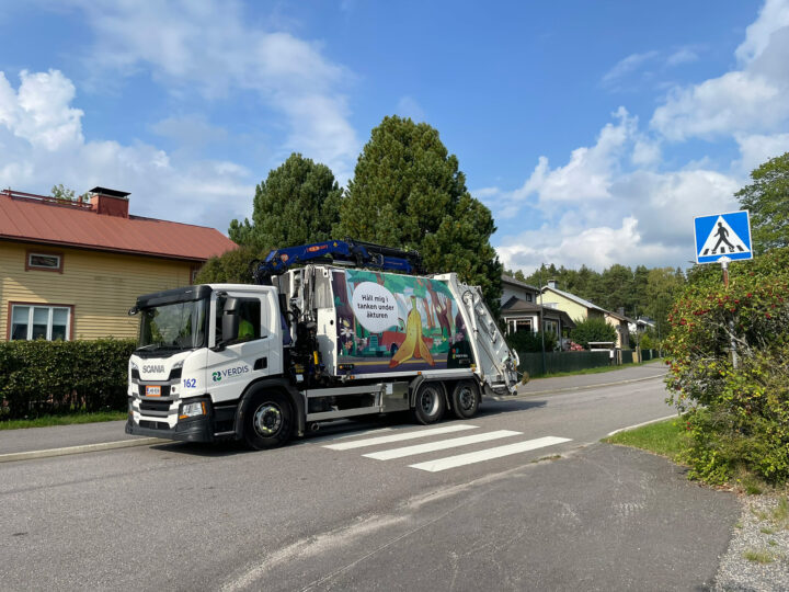 05.09.2024 Rosk’n Roll meddelar: Sopbilarnas nya utseende för tankarna till framtiden ”I sopbilarnas nya look är avfallet av större betydelse än bara ett skräp”, säger Rosk’n Rolls kommunikationskoordinator Petra Lind. Foto: Rosk’n Roll Ett bananskal som susar förbi? En mjölkburk som kramar ett träd? När du rör dig i Väst- och Östnyland kan du i fortsättningen bonga sopbilar med färgglada illustrationer och finurliga budskap. Med den nya looken vill Rosk’n Roll väcka tankar och uppmuntra till återvinning. ”Framtiden är starkt närvarande i sopbilarnas nya utseende. Ett skräp är inte bara ett skräp, utan avfall är en värdefull råvara som kan återvinnas på många olika sätt”, säger Petra Lind, kommunikationskoordinator på Rosk’n Roll. I stället för traditionell avfallsrådgivning och en uppmaning om att sortera har det i illustrationerna och budskapen lämnats rum för betraktarens fantasi. Avfallen är glatt förmänskligade i sopbilarnas nya look: Där en tom glasflaska fantiserar om att göra en glasklar comeback, drömmer en tom konservburk om sin framtid – som satellit. ”Vi vill påminna om att avfallssortering är något mycket mer än bara en mekanisk syssla. Det har betydelse att vi sorterar våra sopor och för avfallet till korrekta insamlingsplatser. Vi ger så att säga avfallet en chans till ett nytt liv och samtidigt sparar vi på jungfruliga råvaror”, säger Lind. Återvinningens glädjebudskap Skogar sparas när vi återvinner kartong. Av glasburkar och -flaskor får vi råvaror – bland annat sand – som används för att tillverka nya syltburkar. Av plastförpackningarna tillverkas nya plastprodukter och av metallen återvinns hela 95 procent som returråvara. Av bioavfallet å sin sida produceras biogas, gödsel och energi: med ett kilogram bioavfall kan mobiltelefonen laddas till och med hundra timmar. Inte att förglömma påsen med blandavfall som skumpar fram på sopbilens sida och ler nöjt när den utbrister: ”Inte bara en sopa, vill värma er allihopa! Med fräscha illustrationer och lekfulla budskap förs sorteringens och återvinningens glädjebudskap ut till kunderna och samtidigt piggar de upp andra som rör sig på vägarna. Alla vardagar rör ju sig sopbilarna runtom i väst – och östnyländska städer, tittar in på gårdar och i husbolag samt stannar vid ekopunkter för att tömma sopkärlen. Det är underentreprenörernas fordon som fraktar avfall i Rosk’n Rolls namn. Sopbilarnas nya utseende har tagits fram i samarbete med reklambyrån Creative Crue. Dela: Länken har kopierats till urklipp