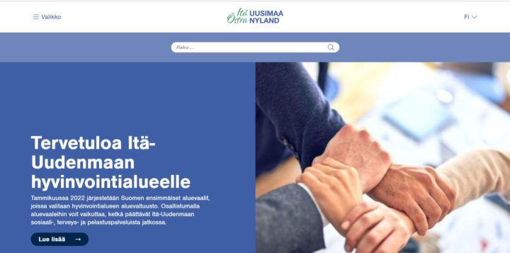 07.10.2021 Itä-Uudenmaan hyvinvointialueen verkkosivusto on avattu Itä-Uudenmaan hyvinvointialueen valmistelu etenee. Hyvinvointialueen verkkosivusto on avattu osoitteissa itauusimaa.fi ja ostranyland.fi. Hyvinvointialueen valmistelua voi jatkossa seurata myös sosiaalisessa mediassa, mm. Twitterissä ja Facebookissa. Itä-Uudenmaan hyvinvointialue ottaa vastuun sosiaali-, terveys- ja pelastuspalveluista Askolassa, Lapinjärvellä, Loviisassa, Myrskylässä, Porvoossa, Pukkilassa ja Sipoossa 1.1.2023. Hyvinvointialueen ylin päättävä elin, aluevaltuusto, valitaan vaaleilla tammikuussa 2022. Hyvinvointialueen väliaikainen valmistelutoimielin tiedottaa ajankohtaisista, käsiteltävistä asioista uudella verkkosivustolla, jossa julkaistaan suomeksi ja ruotsiksi mm. uutiset, esityslistat ja pöytäkirjat. Sivustolta löytyy myös tietoa aluevaaleista, hyvinvointialueen hallinnosta ja kehityshankkeista. – Hyvinvointialueen valmistelutoimielin aloitti työnsä elokuun lopussa, ja nyt olemme avanneet verkkosivut ja sosiaalisen median kanavat. Sivustoa täydennetään ja päivitetään muun muassa valmistelevan toimielimen kokousten myötä, sanoo Itä-Uudenmaan hyvinvointialueen väliaikaisen valmistelutoimielimen puheenjohtaja Ann-Sofie Silvennoinen. Verkkosivuston osoite: itauusimaa.fi ostranyland.fi Linkit sosiaaliseen mediaan: Twitter Facebook LinkedIn YouTube Jaa: Linkki kopioitu leikepöydälle