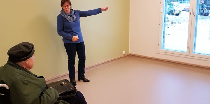 22.11.2017 Kolme viikkoa muuttoon – Harmaakallion palvelutalo valmistuu pian Muuttokuormat ajavat 11. ja 13. joulukuuta uuden palvelutalon pihaan Loviisan Harmaakalliossa. 56 senioria Hemgårdenista, Hemtrevnadista, Maritakodista ja Hamberginkodista saavat uuden kodin kauniissa metsämaisemissa. Talon neljän siiven väliin jää mukavat, ulkoiluun sopivat sisäpihat. Uuden palvelutalon kerrosala on yli 3 000 neliömetriä ja hoitohenkilökunnan vahvuus on 35 henkeä. Talo on yhdessä tasossa, ja jokainen yksityiskohta on suunniteltu ikääntyneille asukkaille. Maj-Gret Forsas on yksi tulevista asukkaista. Hän ja Carola Weckman Hemgårdenista kurkistivat yhteen huoneista. – Ikkunat on sijoitettu matalalle, jotta niistä näkisi ulos myös sängystä, Loviisan senioripalvelupäällikkö Lisbeth Forsblom kuvailee. Aidatulle pihalle on useita uloskäyntejä, koska haluamme, että asukkailla on mahdollisuus ulkoilla halutessaan. Erityisen tyytyväinen Forsblom on pihaan, josta kevään tullen muodostuu kaunis keidas. Asukkaat voivat myös toiveensa mukaan saunoa joko sähköllä tai puilla lämmitettävässä saunassa. Iloisia ja helpottuneita urakan valmistumisesta: palvelupäällikkö Lisbeth Forsblom (vas.) ja perusturvajohtaja Carola Klawér. Harmaakallion palvelutalo on rakennettu alle vuodessa. Lisbeth Forsblom kertoo rakennusprojektin edenneen erittäin jouhevasti pitkän suunnitteluvaiheen jälkeen. Ennen muuttoa talo sisustetaan sekä upouusilla että vanhoilla kalusteilla: osa nykyisten palvelutalojen huonekaluista ja esineistä muuttaa asukkaiden mukana uuteen taloon. Hemgårdenista tuodaan muun muassa piano, Hambergin kodista antiikkisia huonekaluja. Asukkaat saavat halutessaan sisustaa huoneensa omilla huonekaluilla ja verhoilla. Omaiset auttavat tekemään muutosta iäkkäille asukkaille mahdollisimman mukavan. Harmaakallion palvelutalon harjakaisia vietettiin 22. marraskuuta 2017. Jaa: Linkki kopioitu leikepöydälle