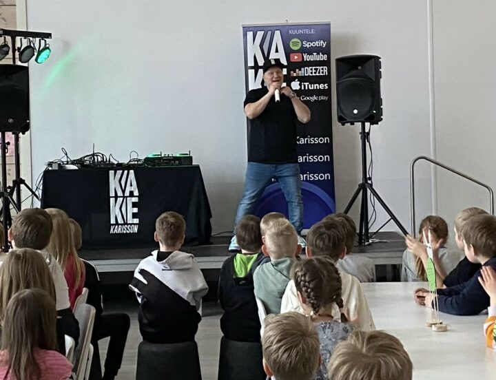 25.04.2025 Rap-artisti Kake Karisson innosti Koskenkylän koululaiset riimittelemään Voiko jokainen oppia kirjoittamaan oman laulun, räpin tai runon? Pop-rap-artisti Kake Karissonin mielestä voi. Lasten ja nuorten innostus lukemiseen ja kirjoittamiseen on vähentynyt, joten Karissonin järjestämät lyriikkapajat tarjoavat innostavan ja uudenlaisen tavan saada kipinän syttymään kirjoittamisen ja lukemisen pariin. Kake Karisson vieraili Koskenkylän koululla 17.4.2025 pitämässä lyriikkapajaa 4.–6.-luokkalaisille. Lyriikkapajassa oppilaat oppivat riimittelemään omia rap-biisejä. Lisäksi oppilaat saivat esittää tuotoksensa omalle ryhmälle, jos halusivat. Kaikki oppilaat osallistuivat innokkaasti pajaan. Kaken ohjaus oli ammattitaitoista ja rentoa, ja hän sai oppilaat keksimään aivan huikeita riimittelyjä.Päivä huipentui Kaken pitämään keikkaan koko koulukeskuksen väelle. Tunnelma oli katossa kun noin 180 oppilasta eskareista kuudesluokkalaisiin saivat olla mukana laulaen ja tanssien. Rohkeimmat lyriikkapajaan osallistujat pääsivät esittämään omia riimittelyjään koko koulukeskukselle.Koskenkylän koulukeskuksessa oli 17.4. todellakin hyvä päivä! Kuvat: Katja Smeds, Loviisan kaupunki Jaa: Linkki kopioitu leikepöydälle