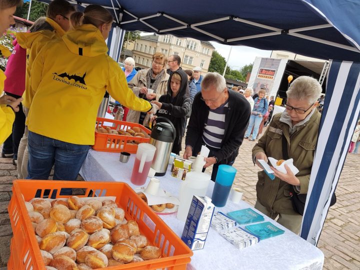 25.08.2017 Tunnelmia Loviisanpäivän vietosta Kiitos kaikille juhliin osallistujille! Tässä kuvakavalkadi perjantai-iltapäivältä 25.8. Loviisanpäivän tervetuliaispuheen piti vt. kaupunginjohtaja Kristina Lönnfors. Paljonko painaa 13-vuotiaan lätkämaalivahdin varustekassi? Kaupunginhallituksen pj. Mia Heijnsbroek-Wirén osallistui kilpailuun. Mitä Mia arvasi jää salaisuudeksi. Toritapahtuman juonsi Loviisasta kotoisin oleva Ylen toimittaja Nicke Aldén, joka löysi näköiskuvansa ilmapallosta. Paikalliset yritykset ja yhdistykset, kuten LJK, esittelivät toimintaansa lavalla. Tässä jääkiekkojunnut näyttävät esimerkkiä. Loviisanpäivän kahvit ja munkit maistuivat, nam! Loviisa Baby-nuttunäyttelyssä moni ensimmäisten nuttujen saaneet ekaluokkalaiset kävivät kuvauttamassa itsensä nuttujen kanssa. Kaikki Loviisassa syntyvät lapset saavat oman, uniikin nutun lahjaksi. Nappulajuoksu Raatihuoneen puistossa oli vauhdikas kisa. Laivasillan diskossa oli lämmin meininki sateesta huolimatta. Jaa: Linkki kopioitu leikepöydälle