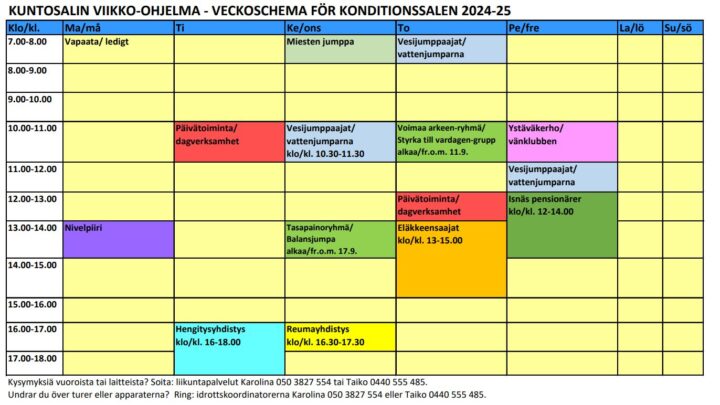 Ilmoittautuminen kuntosaliryhmiin tapahtuu sähköisen ilmoittautumisjärjestelmän kautta 22.8.2025 klo 9.00 alkaen,