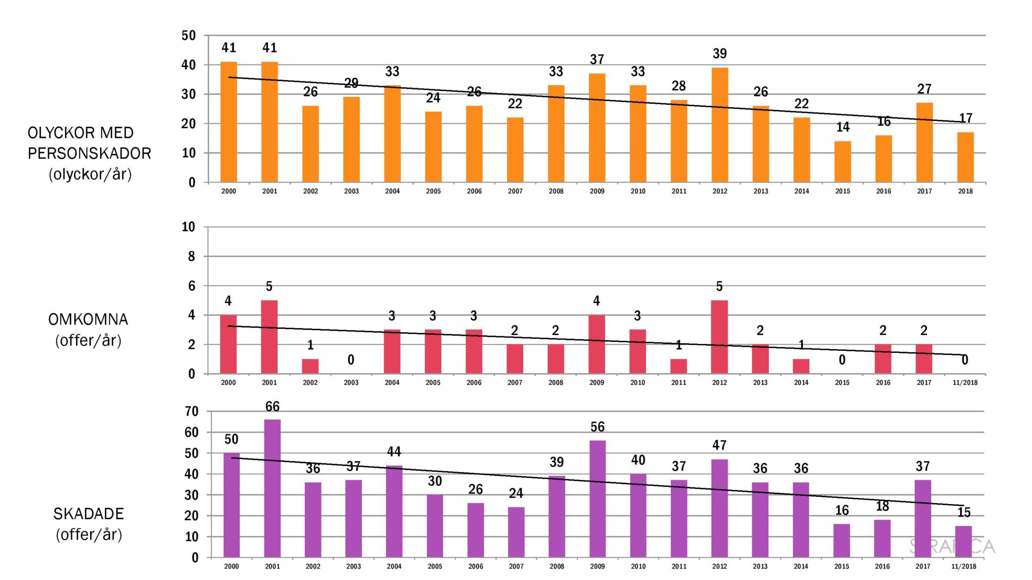 Den officiella olycksstatistiken grundar sig på de fall som kommer till polisens kännedom. Därför saknas en mängd singelolyckor för cyklister och mopedister som har lett till personskador.