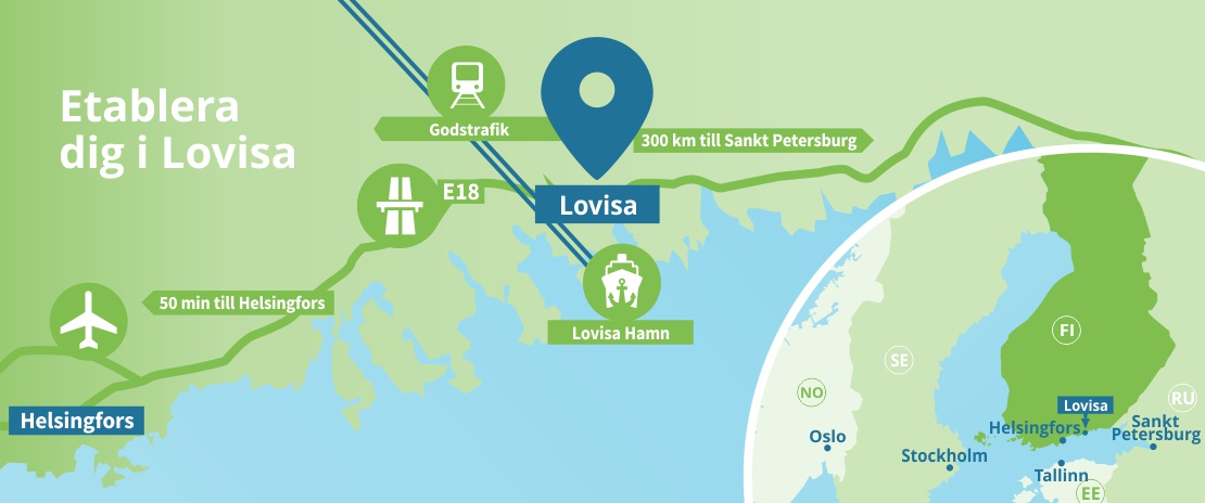 Lovisa erbjuder företagare en utmärkt verksamhetsmiljö: flexibla och snabba trafikförbindelser, starka kluster, ett livligt lokalt näringsliv och förmånliga tomter. I Lovisa får du den lilla stadens flexibilitet och det närliggande storstadsområdets möjligheter på en och samma gång.