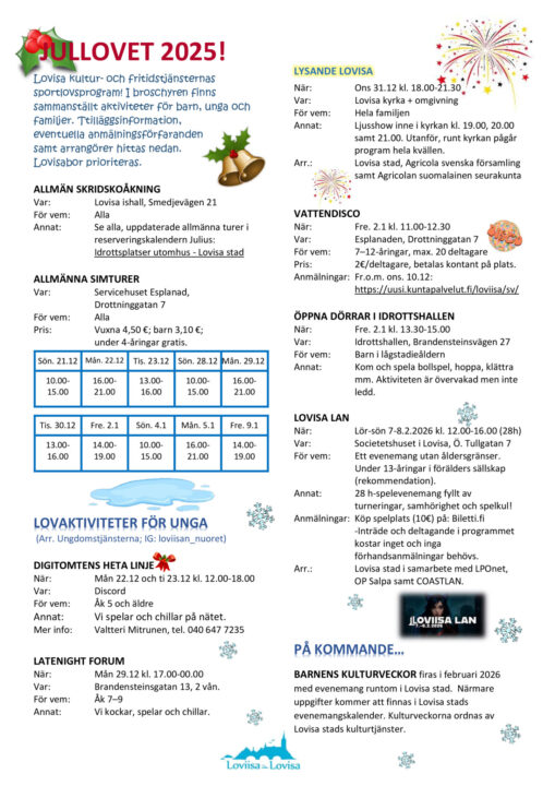 Lovisa kultur- och fritid ordnar mångsidig verksamhet för barn och unga. Titta på utbudet nedan och kom med!
