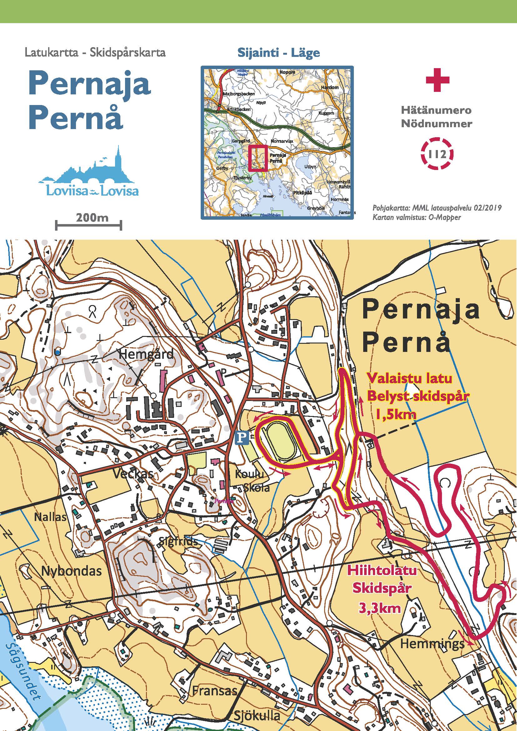 Torsby (Pernå kyrkoby) skidbana, Pernåvägen 184: 1,4 km (belyst), 4,5 km(klicka på bilden för att se den större)
