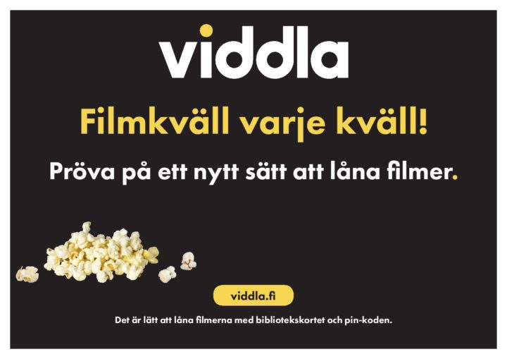 20.12.2018 Bibliotekets julgåva – strömmande filmtjänsten Viddla Torsdagen 20.12 tas strömmande (streamade) filmtjänsten Viddla i bruk i Helle-biblioteken! Här kan du låna och se strömmande filmer direkt via nätet på adressen https://viddla.fi Välj först vilken film du vill låna och efter det kan du logga genom att klicka på Spela film-knappen. Välj ditt eget bibliotek, Helle-kirjastot, och logga in med ditt bibliotekskortsnummer och din pinkod. Ett lån är i kraft 48 timmar och under den tiden kan du se filmen så många gånger du vill. Lånen är begränsade till högst 4 lån per bibliotekskort under en kalendermånad. Obs. Helle-biblioteken har bara en begränsad mängd lån att använda per månad. Dela: Länken har kopierats till urklipp