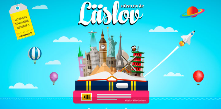 Höstlov är lika med läslov och du har oändliga möjligheter att läsa … nej, resa vart du vill! Ta med din kompis eller din familj så ni kan dela upplevelserna. Eller vill du kanske resa på egen hand och berätta om det du varit med om senare?