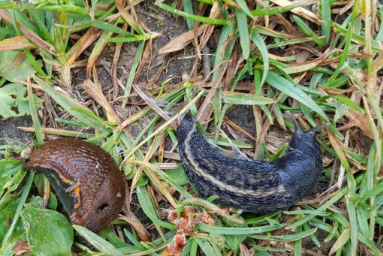 16.07.2025 Den fuktiga början på sommaren gynnade den skadliga mördarsnigeln – på stadens depå börjar arbetsdagen med utrotningstalko Mördarsnigeln orsakar stora skador i hemträdgårdar och på odlingar. Dessutom utgör mördarsnigeln en hälsorisk för människor och husdjur eftersom den avsöndrar slem som kan innehålla bland annat listeria- eller E.coli-bakterier. Mördarsnigeln förekommer ofta i massor och sprider sig effektivt till nya områden med plantor och marksubstanser. Färgen varierar, men mördarsnigelns rygg är rundad och har ingen köl och andningshålet finns framför mitten av manteln. (Bild: Juha Ahvenainen / vieraslajit.fi) Det förekommer mördarsniglar också i Lovisa. Stadens parkavdelning kartlade deras förekomst år 2021. Då gjorde man flera observationer i Nystadens område, och där förekommer det rikligt med mördarsniglar, särskilt i omgivningen kring stadens depå. Efter att regnen i juni började har arbetsdagen på depån börjat med talko för att utrota mördarsniglarna. Sniglar rör sig särskilt i fuktigt väder, som vi haft gott om denna sommar. Under en morgon kan man ha plockat till och med över tvåhundra mördarsniglar. Markägaren har en skyldighet att bekämpa denna skadliga främmande art på behörigt sätt och hindra dess spridning i Finland. Flytta alltså inte trädgårdsavfall eller plantor om det tidigare har förekommit mördarsniglar i dem. Mördarsnigeln kan bli upp till 7–14 centimeters lång och kan vara svår att identifiera på basis av bara färgen eftersom dess färg skiftar från orangerödbrun till smutsig brun eller svart. På grund av detta kan man lätt förväxla den med den gråsvarta kölsnigeln som förekommer naturligt i Finland. Kölsnigeln är svart till färgen och har vita ränder. Om du osäker på om det är en mördarsnigel fäst uppmärksamhet vid andningshålets placering samt formen på ryggen och svansen. På mördarsnigeln är andningshålet placerat på framsidan av manteln, dess rygg är rundad och utan köl och kroppens bakända är trubbigare. Kölsnigeln har andningshålet längre bort från huvudet, bakom mitten av manteln, och den har en spetsig bakända samt en klar köl på ryggen. Mördarsnigel till vänster och en harmlös gråsvart kölsnigel till höger. Kölsnigeln har andningshålet bakom mitten av manteln och en längsgående köl på ryggen. (Bild: Lauri Urho / vieraslaji.fi) En annan snigel som förekommer i Finland och ibland förväxlas med mördarsnigeln är brun skogssnigel. Den bruna skogssnigeln blir ändå aldrig längre än 7 cm och dess slem är mycket orange medan mördarsnigelns slem är färglöst. Som föda accepterar mördarsnigeln trädgårdens olika växter, från blad till blommor och lökar. Den var tidigare känd som spansk skogssnigel men nuförtiden kallas den mördarsnigel eftersom den äter djurkadaver, också av sin egen art. Mördarsnigeln rör sig i massor, så om du hittar en hittar du troligen fler. I stort antal hotar den naturens mångfald och andra arter. De andra snigelarter som förekommer naturligt i Finland rör sig i allmänhet enskilt. Det effektivaste sätt att bekämpa mördarsnigeln är att börja redan på våren, innan de hinner lägga ägg. På grund av risken för infektioner är det viktigt att använda engångshandskar och till exempel långa tänger för att undvika att få slem på huden. Enligt djurskyddslagen är det förbjudet att utsätta djur för onödigt lidande, så avlivningen måste göras snabbt och på rätt sätt. Man kan till exempel krossa mördarsnigeln med en sten mot en hård yta eller klippa av dess nervring mellan hornen med en sax. Se alla metoder för att bekämpa mördarsnigeln på adressen vieraslajit.fi. Läs fler meddelanden om främmande arter: www.loviisa.fi Mer information om bekämpning av invasiva arter: Rosk’n Roll Dela: Länken har kopierats till urklipp