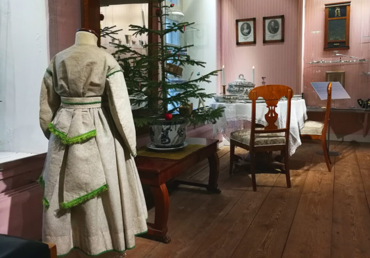 29.11.2019 I Kommendantshuset firas jul som på 1860-talet Upplev julen i en köpmansgård från 1800-talet i Lovisa stads museums julutställning i Kommendantshuset. Med utgångspunkt i författaren Maria Nyströms minnen visar utställningen hur man firade jul i Lovisa på 1800-talet. Maria Nyströms jul 30.11.2019–5.1.2020 Upplev julen i en köpmansgård från 1800-talet i Lovisa stads museums julutställning i Kommendantshuset. Med utgångspunkt i författaren Maria Nyströms minnen visar utställningen hur man firade jul i Lovisa på 1800-talet. Maria Nyström, f. Gratschoff (1854–1937) var författare och publicerade 1917 och 1918 sina minnen och anteckningar i böckerna ”Lovisa. Min födelsestad” 1 och II. Här beskriver hon bland annat hur julfirandet gick till i Lovisa på 1800-talet. Som barn bodde den unga Maria Gratschoff med sin familj i ett av stadens större handelshus. Den Gratchoffska gården på drottningsgatan var en paradplats för att iaktta småstadens vimmel. Hela staden besökte handelsboden, och Gratschoffs, som hörde till stadens grädda, kände allt och alla. Då som nu var julen en stor händelse i Lovisa och det fanns många traditioner som hörde helgen till. Julen som en räcka spännande händelser från Annadagen till Tjugondag Knut. Maria Nyström beskriver levande det vimmel som rådde inför jul i Gratschoffska gården. Inte bara familjen, utan husor, pigor, drängar, bodbetjänter, bokhållare och diverse hjälpgummor var engagerade i julstöket. I Gratschoffska gården firade man julafton med julmat och en liten gran fylld med godsaker och klappar. Barnklänningen från 1860-talet är ett lån från Kulla gård. Julkonsert I Kommendantshuset får man också njuta av en skön julstämning under museets julkonsert med folkmusik den 7.12 klockan 17.30. Tomas Takolander (sång, gitarr) och Janne Ojajärvi (munspel, sälgflöjt och strupsång) bjuder på vacker och lugn musik i Kommendantshusets julklädda sal. Det är fritt inträde till både konserten och museet under 2019. Museet är öppet t.o.m. 20.12 ti-sö 12-16 och från 27.12 ti-fre, sö 11-16. Under Lovisa jul –helgerna har museet öppet 10-17. Stängt på självständighetsdagen 6.12, 21-26.12 och på nyårsdagen 1.1.2020. Kommendantshuset, Lovisa stads museum, Parkgatan 2, Lovisa Dela: Länken har kopierats till urklipp