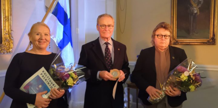 06.12.2020 Lovisa stad belönade kulturmeriterade aktörer Lovisamedaljen 2020 beviljades till Lovisa Sjöfartsmuseum. Priset delas ut en gång per fullmäktigeperiod. Kulturpriset, som nu delades ut för första gången, mottogs av Päivi Ahvonen. De prisbelönta publicerades på självständighetsdagen 6.12.2020. Kulturpriserna delades ut under ett tillfälle som ordnades tidigare på veckan, i och med att den egentliga självständighetsdagsmottagningen i år inte kunde ordnas på grund av coronavirusepidemin. Lovisamedaljen Lovisa stad delar ut Lovisamedaljen med fyra års mellanrum. Medaljen delas ut till en framgångsrik konstnär, kulturarbetare eller organisation eller ett framgångsrikt projekt som är betydande för nejden. Föregående gång, 2016, mottog konstnär Jouni Jäppinen medaljen och 2012 mottogs den av kompositör och musiker Arno Kantola. Mottagaren av Lovisamedaljen 2020 är Lovisa Sjöfartsmuseum. I motiveringarna nämndes bland annat att Lovisa Sjöfartsmuseum har långsiktigt och systematiskt utvecklat sin museiverksamhet skött sin ekonomi lockat årligen många besökare med sin spännande och sevärda utställningsverksamhet publicerat intressant litteratur om Lovisa sjöfarts historia hållit sin fastighet och sina inventarier i skick. Dessutom bidrar Lovisa Sjöfartsmuseum på Skeppsbroområdet till att skapa en positiv Lovisabild. Lovisamedaljen överräcktes av direktören för centralen för bildning och välfärd Kirsi Kinnunen och stadsstyrelsens ordförande Mia Heijnsbroek-Wirén. Gunilla Törnblom och Antti Muuronen mottog medaljen på Lovisa Sjöfartsmuseums vägnar. Kulturpriset Kulturpriset är en ny utmärkelse som nu 2020 för första gången delas ut. Priset, som i fortsättningen delas ut årligen, delas ut till en aktör – en privatperson, förening eller grupp – som med gärning eller verksamhet inverkat speciellt mycket på kulturlivet i Lovisa eller som lyft fram Lovisa nationellt eller internationellt. Det var fram till 7.10.2020 möjligt att med motiveringar föreslå mottagaren av kulturpriset. Sammanlagt inlämnades 39 förslag. Mottagaren av kulturpriset för 2020 är Päivi Ahvonen. I de talrika förslagen och motiveringarna nämndes bland annat följande: Hon har aktivt arbetat för att göra konst och kultur mer tillgängliga. Hon har arbetat med ett flertal projekt och koncept som gör Lovisa till en positivt annorlunda småstad. Hon har främjat kulturverksamheten i Lovisa. Hon är en innovativ person som i sitt kreativa och modiga engagemang har fingret på tidens puls. Hon har bidragit till en starkare social gemenskap i Lovisa och livat upp vår gatubild med ett färgrikt kulturliv. Hon är inspirerande. Hon har bland annat skapat diskussionskanaler, workshoppar, lokaler och möjligheter att presentera olika slags arbeten och idéer samt skapa nätverk. Hon hyser en stor passion för dans- och cirkuskonst. Kulturpriset överräcktes likaså av direktören för centralen för bildning och välfärd Kirsi Kinnunen och stadsstyrelsens ordförande Mia Heijnsbroek-Wirén. I bilden från vänster Päivi Ahvonen som mottog kulturpriset och Antti Muuronen och Gunilla Törnblom som mottog Lovisa-medaljen på Lovisa Sjöfartsmuseums vägnar.Fotograf: Jonas Randers / JR Sound. Uppdaterad 31.12.2020: videoinspelningen har avlägsnats. Dela: Länken har kopierats till urklipp
