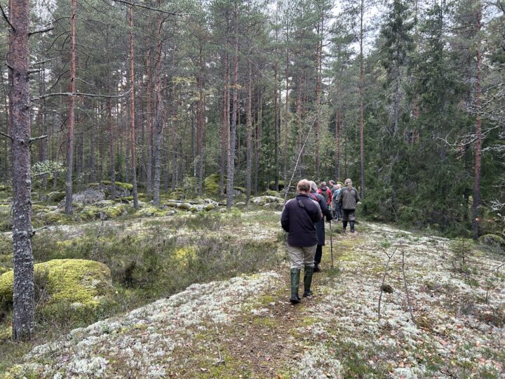 20.09.2024 Naturutflykt till Valkom: Lovisaborna bekantade sig med ett nytt naturskyddsområde tillsammans En naturutflykt till Valkom som ordnades av Lovisa stads miljövårdsenhet samlade flera Lovisabor för att bekanta sig med naturskyddsområdet Stormossen-Fantsnäsmalmen som grundades i mars 2024. Guiden för utflykten var biologen Jere Salminen som ledde gruppen bland mångsidiga naturtyper. Stigen lockar promeneraren. Kom ihåg att stanna på existerande stigar i skyddsskogen; särskilt lav- och mosstäcken på bergen är känsliga för slitage. Den grupp som deltog i utflykten bestod av ivriga naturvänner, bland annat grannar till skyddsområdet och Lovisabor som hade kommit längre ifrån. På stigen stötte de av en slump på en lokal hundrastare som berättade om grävlingar på området och sade sig vara glad över det skydd som området har fått. Guiden Jere Salminen berättade för utflyktsdeltagarna om områdets naturtyper och deras särdrag, såsom de hotade naturtyperna av mokärr och risrik tallmyr, samt framhävde vikten av träd och murket träd för naturens mångfald. Också röda skogsmyrornas viktiga roll i skogsekosystemets välmående blev ämnet för en diskussion. Jere Salminen berättade om betydelsen av dött trä för skogens mångfald. Utflyktsdeltagarna njöt av det fina höstvädret och diskussionen var livlig när deltagarna delade tankar om tätortsskogarnas betydelse för invånare på närområdet samt om skogsvårdens konsekvenser för naturens mångfald. För skyddsområdets grannar var utflykten särskilt betydelsefull; de var belåtna över att deras ”egen skog” förblir skyddad också för kommande generationer. På bergiga områden växer gamla sköldbarkiga tallar. I tallmyren doftade getpors. Naturutflykten erbjöd deltagarna värdefull information och kanske också oförglömliga upplevelser. Jere Salminens sakkunniga guidning fördjupade förståelsen av områdets diversitet och ekosystemens betydelse. Under utflykten upplevde man naturens lugnande verkan och såg hur olika naturtyper och ekosystem växelverkar med varandra. När deltagarna återvände från skogen var de piggare och fick ny inspiration för att vårda naturens mångfald. Den gemensamma upplevelsen lyfte fram naturens unika skönhet och värde. Tack till alla för en lyckad utflykt! Lovisa stadCentralen för näringsliv och infrastruktur Dela: Länken har kopierats till urklipp