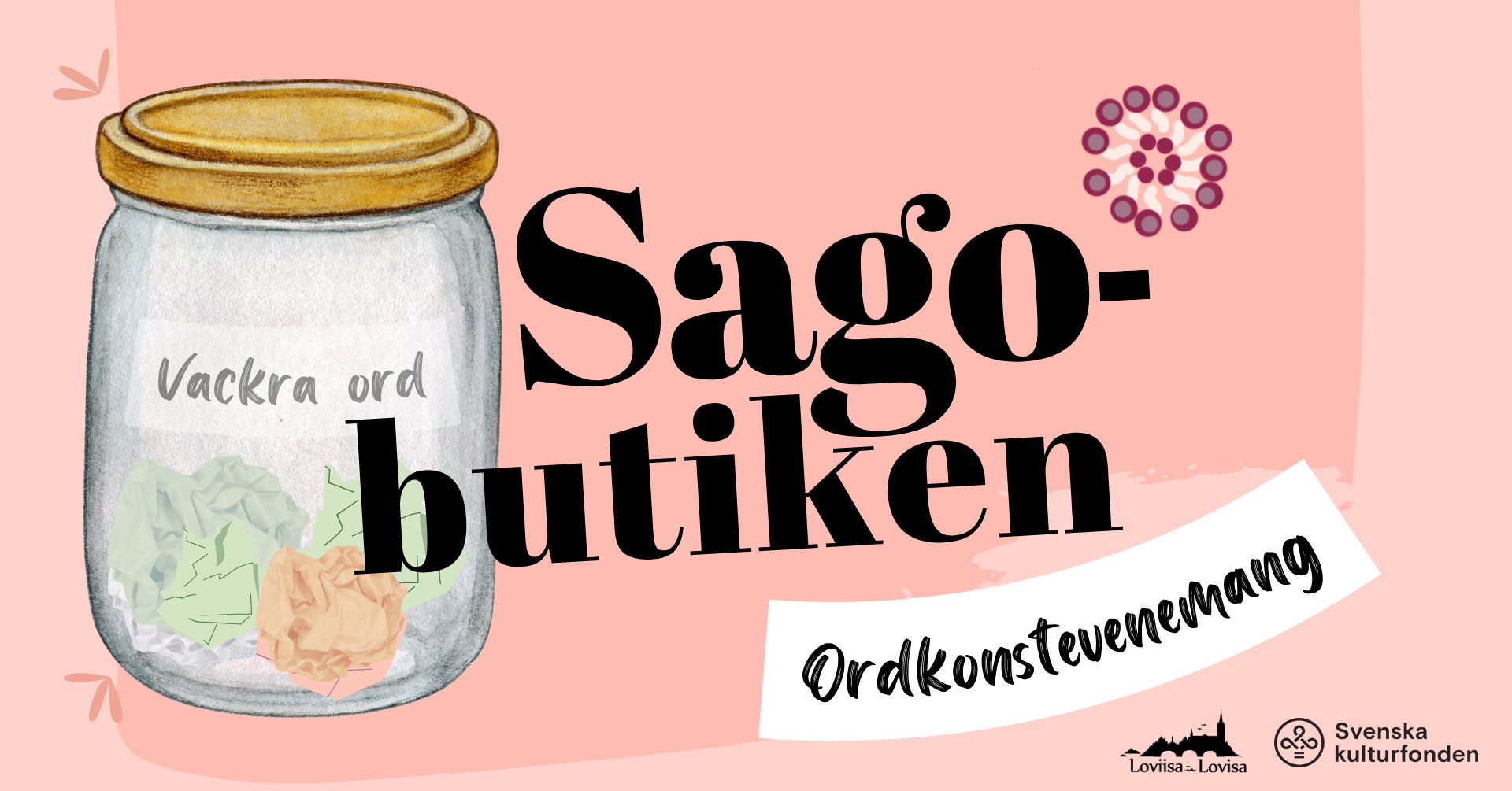 Ordkonstevenemanget Sagobutiken på Lovisa huvudbibliotek 8.11.2025 och 13.12.2025
