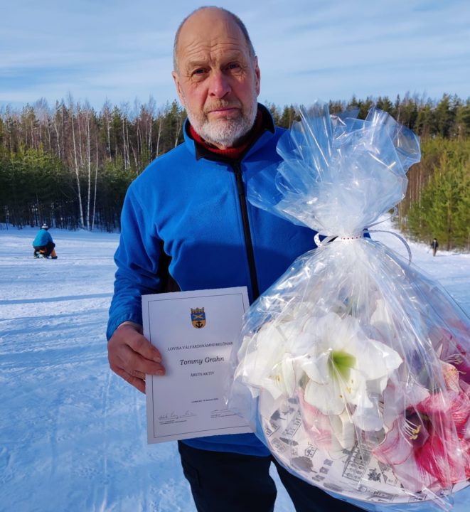 01.03.2022 Tommy Grahn valdes till årets aktiva – även idrottare premieras Tommy Grahn, som sköter pulkabacken i Köpbacka, belönades på fastlagssöndagen 27.2.2022 som årets aktiva. Han valdes till årets aktiva under välfärdsnämnden i Lovisa stads sammanträde 12.1.2022. Nämnden premierar årligen också framgångsrika idrottare. Köpbacka byaförening föreslog Tommy Grahn till årets aktiva. Välfärdsnämnden valde honom med motiveringen att årets aktiva är en person som gjort betydelsefullt arbete bland barn och unga enligt principer som värdesätter fostran och mångsidighet eller som under en längre tid deltagit aktivt i föreningars verksamhet och som med eget exempel har uppmuntrat andra och befrämjat verksamheten. Tommy Grahn håller pulkabacken i Köpbacka i skick. Han har redan i flera år iståndsatt pulkabacken med motorkälke och utrustning med vilken han skrapar och gör backen slät så att den ska vara bra att åka ut för. Pulkabacken är populär och i synnerhet nu under pandemivintrarna har backen erbjudit en fin idrottsmöjlighet för barn och unga. I själva verket var många barnfamiljer och åka pulka i Köpbacka på fastlagssöndagen 27.2.2022 då Tommy Grahn fick sitt pris av staden. Årets aktiva belönas med ett föremålspris. Välfärdsnämnden premierar årligen också framgångsrika idrottare. Emma Johansson belönas som framgångsrik idrottare med 250 euro. Till årets veteranidrottare 2021 valdes Pauliina Suomela och hon belönas med 250 euro. Dessutom beviljade välfärdsnämnden Hilleröd-pokalen till Miko Vaarimo. Välfärdsnämndens protokoll 12.1.2022 Ytterligare uppgifter: chefen för kultur- och fritidsväsendet Leif Eriksson, tfn 040 568 41 38 Årets aktiv Tommy Grahn Foton: Linda Hällfors I den översta bilden: Tommy Grahn (i mitten) mottar priset av chefen för kultur- och fritidsväsendet Leif Eriksson (till höger) under en premiering i Köpbacka i samband med fastlagsåkning. Dela: Länken har kopierats till urklipp