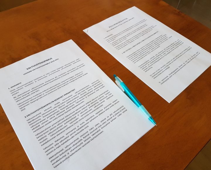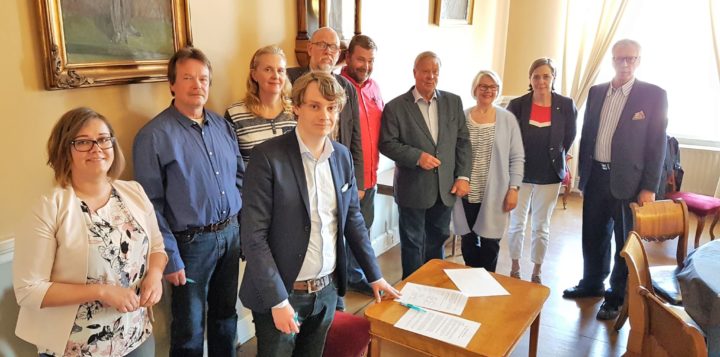 07.05.2018 Loviisan kaupunginvaltuusto solmi valtuustosopimuksen Sopimuksen myötä Loviisan kaupungin valtuustoryhmillä on yhteisymmärrys toiminnallisista tavoitteista ja investointien priorisoimisesta. Sopimus toimii valtuustokauden työskentelyn pohjana ja on voimassa 2018–2021. Sopimus on päivätty 7.5.2018. Kaikki valtuustoryhmät ovat sitoutuneet sopimukseen, joka muodostaa yhdessä hallintosäännön, kaupunkistrategian, ohjelmien ja vuosittaisten talousarvioiden ja –suunnitelmien kanssa kaupungin johtamisen keskeisen työvälineen. Kaupunginvaltuuston joulukuussa 2016 hyväksytty strategia päivitetään keväällä 2019. Tutustu valtuustosopimukseen (pdf) Pääkuvassa kaupunginvaltuuston ryhmäpuheenjohtajat ja kaupunginhallituksen puheenjohtaja Mia Heijnsbroek-Wirén. Jaa: Linkki kopioitu leikepöydälle