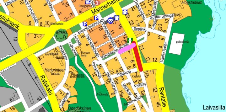 På grund av saneringsarbetet leds trafiken med trafikmärken, men man försöker garantera en obehindrad passage till tomterna med undantag av några korta stunder. Arbetet pågår uppskattningsvis till vecka 26/2022.