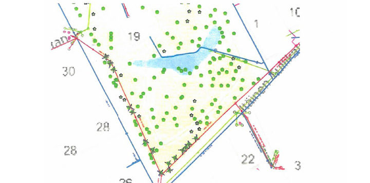 Ajan mittaan on päässyt käymään niin, että puita on kasvanut suoraan viemärilinjan päälle tai välittömään läheisyyteen, jolloin niiden juuret ovat päässeet tunkeutumaan betonisen linjan sisään ja tukkineet sen lopulta kokonaan. Jotta saneeraustyö on mahdollista tehdä, vaatii se puiden poistoa riittävissä määrin linjan päältä ja läheisyydestä. Arviolta noin 15 puuta tulee kaataa ennen kaivuutyön aloittamista ja kaivuutyön edetessä. Myös yksittäisiä puita tulee kaataa tarpeen mukaan mikäli välttämätöntä. Kaadettavat puut on kuvassa merkattu rasteilla.